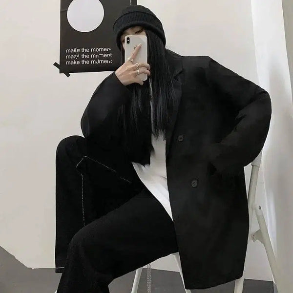 Harajuku Style Kostym Krage Löst och mångsidigt Långärmad