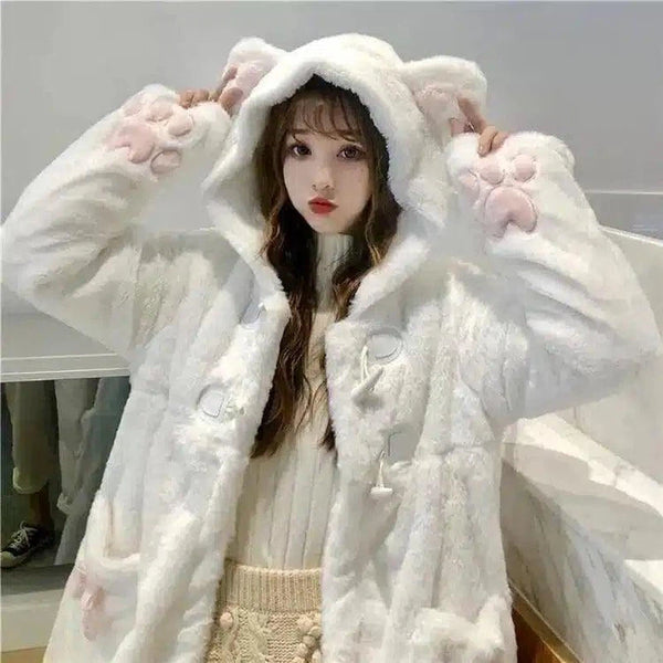 Hooded Söt katt öron bomull vadderad jacka kvinnor
