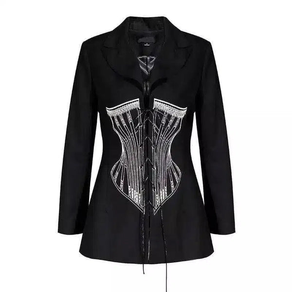 - Designdetaljer: Utsmyckad korsettliknande frontpanel