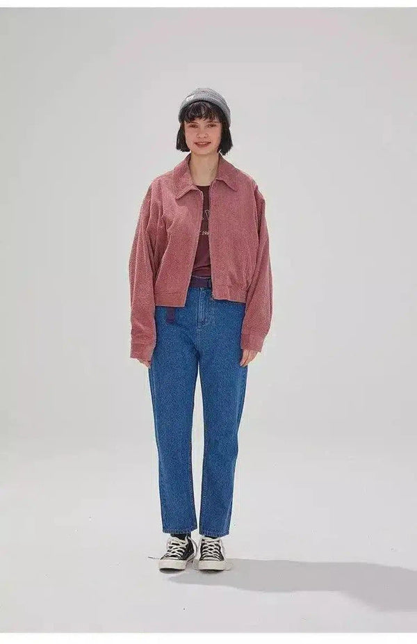Avslappnad manchesterjacka med jeans i avslappnad passform