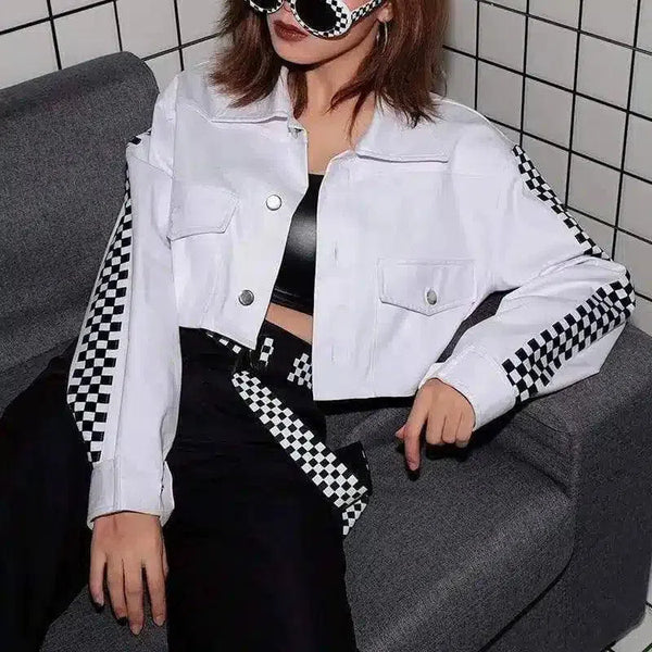 - Designdetaljer: Rutmönster på ärmar och bälte; knappstängning fram; fickor med lock på bröstet