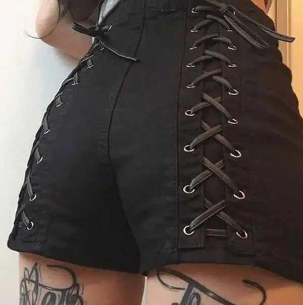 Produktbeskrivning: Women Solid Shorts Criss Cross Bandage REGULAR Hög Midja