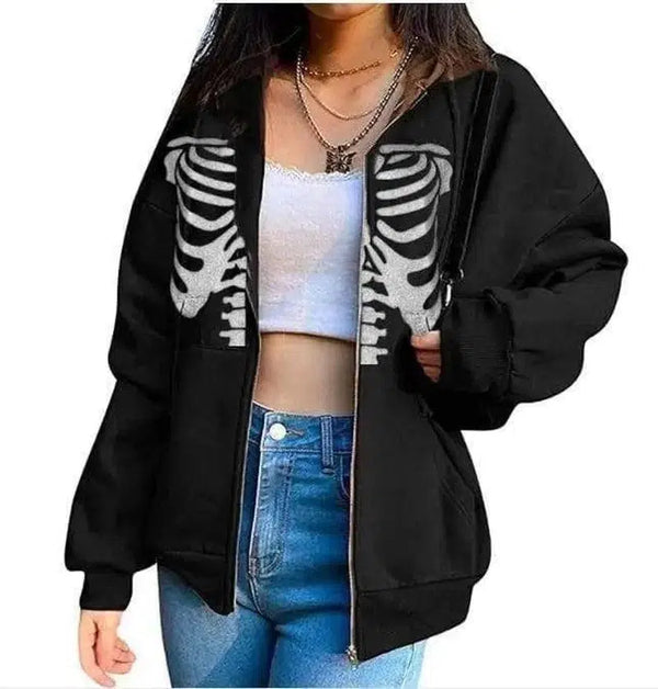 Dam Streetwear Hooded Jacka Skelett Tryck Jacka Lös