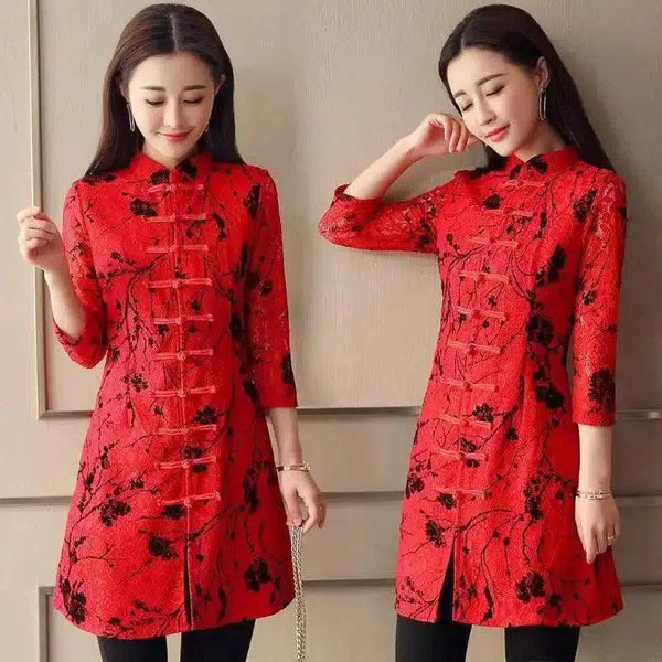 Traditionell blommig Cheongsam-klänning för kvinnor