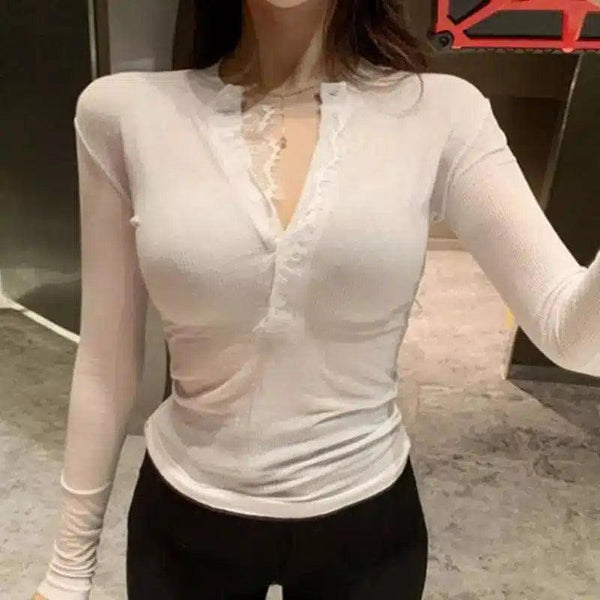Långärmad topp i skir spets för kvinnor