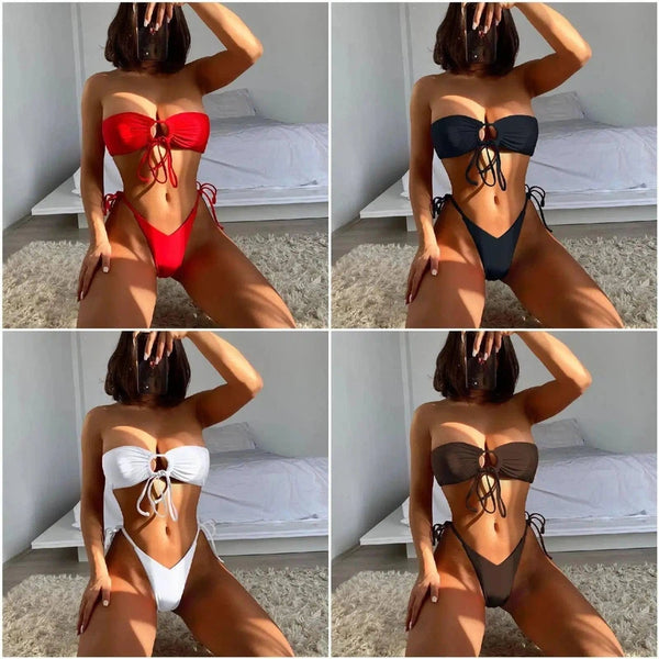 Ladies Split Baddräkt Justerbar Bikini med knutar