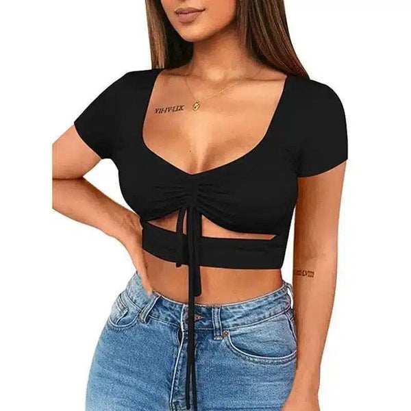 Crop top med knytband och korta ärmar