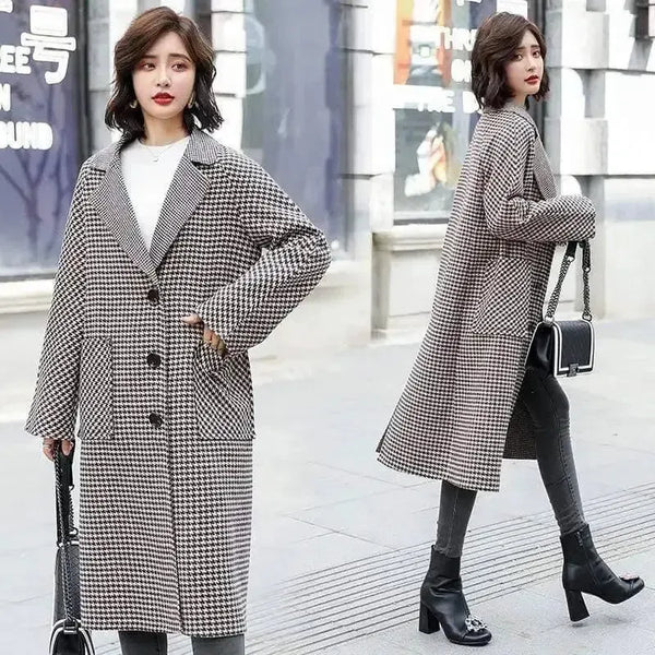 - Timeless Houndstooth Overcoat: Förhöj din garderob med detta klassiska och sofistikerade plagg, perfekt för en polerad look i svalare väder.