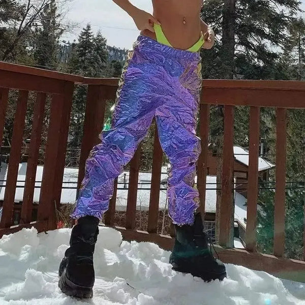 Gradient Hip Hop Streetwear Byxor Kvinnor Lila Koreanska