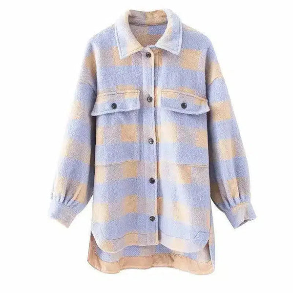 - . Chic rutigt mönster: Stå ut med stil med jackans iögonfallande blå och beige rutiga design, ett tidlöst mönster som ger en touch av klassisk charm till alla outfits.