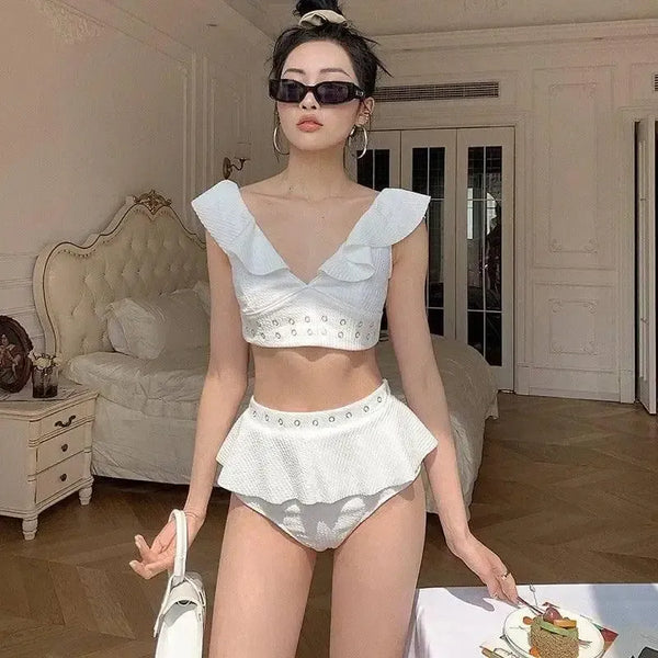 Bikini med volanger och rynkor Rygglös med hög midja Split