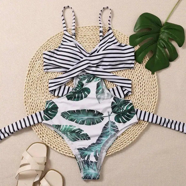 Bikini med bladmönster Bikini europeisk och amerikansk