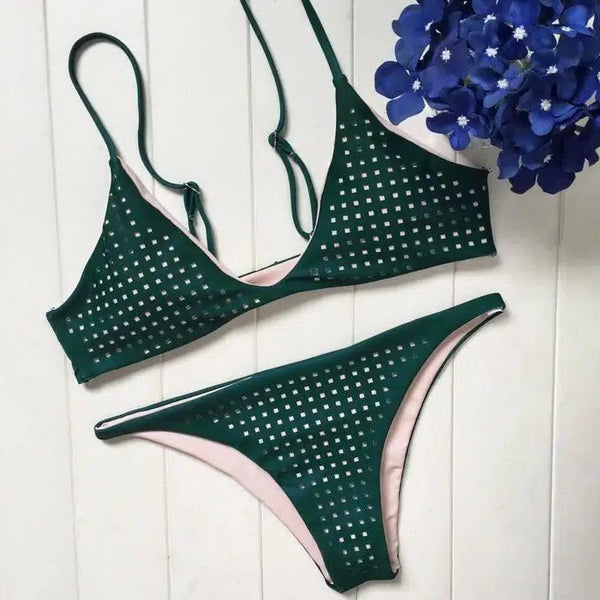 Grön Halter Spaghettiband Bikinis Badkläder