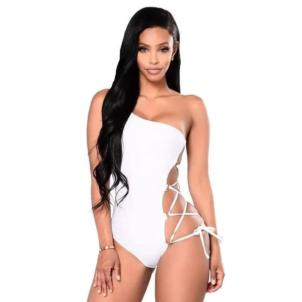 Produktbeskrivning: Bikini baddräkt med en axel och korsband med ringar