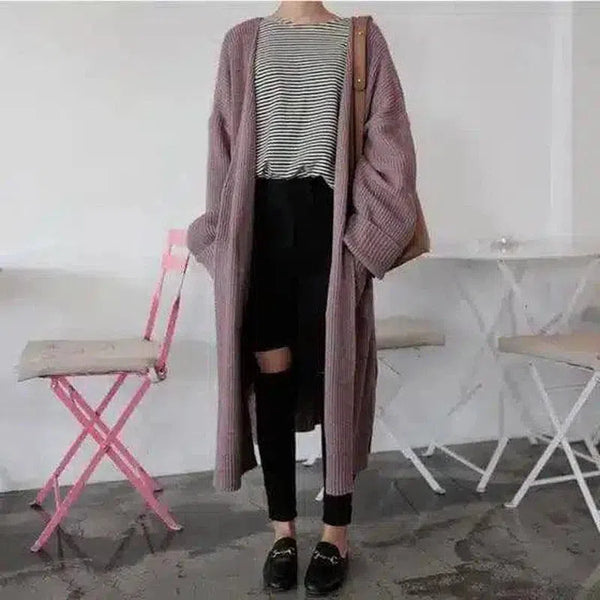 Lång stickad kofta med fickor för kvinnor