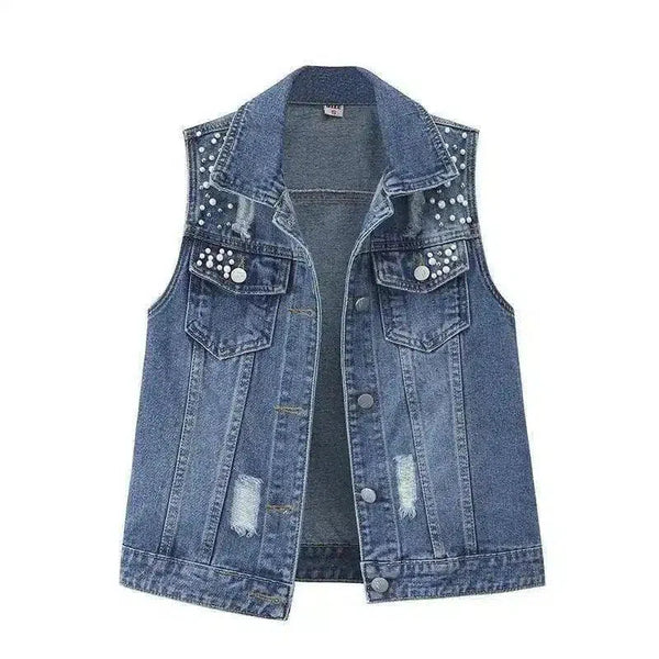 Studded Denim Vest Jacket Ärmlös
