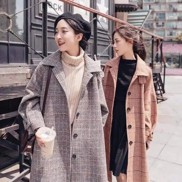 Rutig ullrock kvinnlig lång sektion Koreansk version vinter