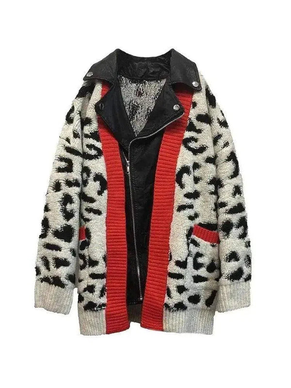 Leopardmönstrad fuskpäls & läderjacka