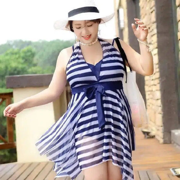 Randig baddräkt med stor kjol