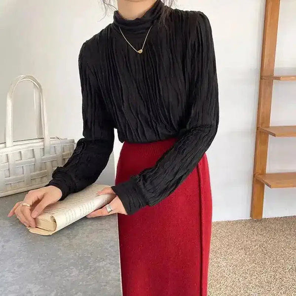 Veckad sköldpaddshalsad långärmad topp för kvinnor