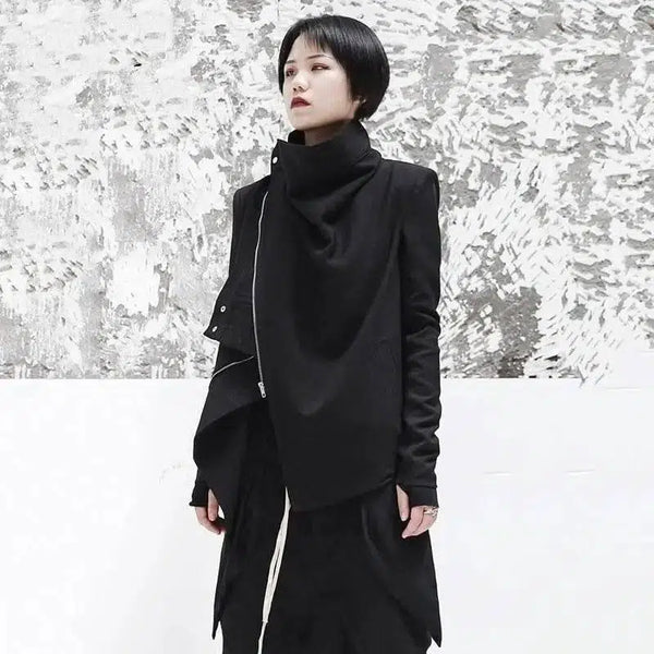 Turtleneck Långärmad Svart Zip Oregelbunden Coat