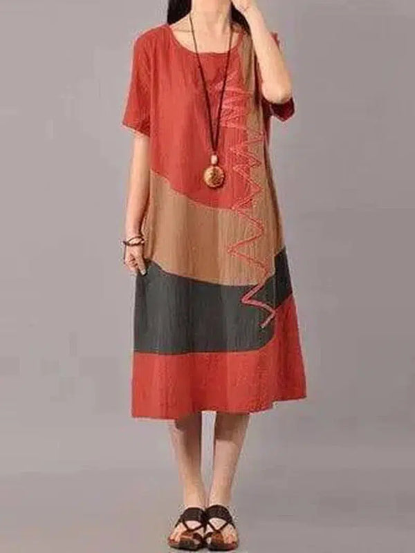 S-5XL Dam Casual Kortärmad Splice Lös O-ringad Mid Long