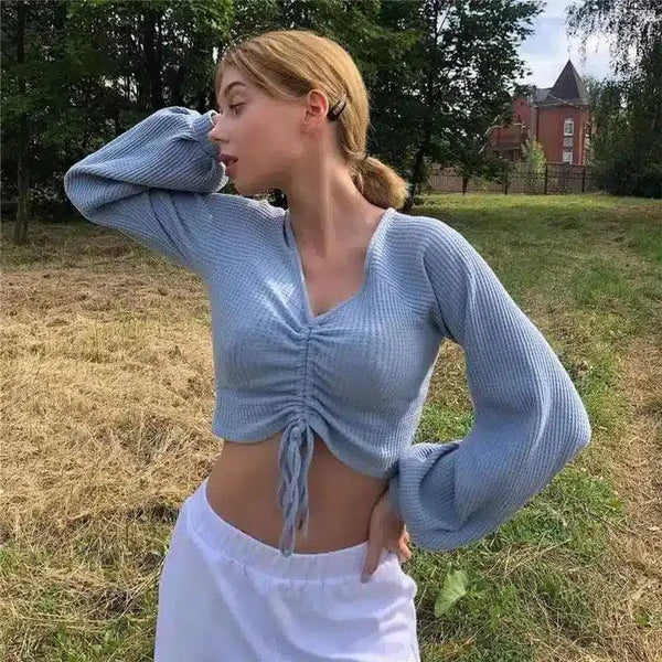 Ljusblå Crop Top med rynkor - moderiktig och bekväm