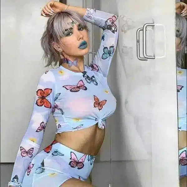 - Design: Vibrerande fjärilstryck på en ljusblå bakgrund