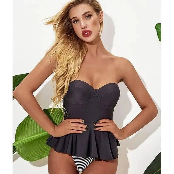 Triangel Tube Topp Plisserad Kjol Split Baddräkt Dam