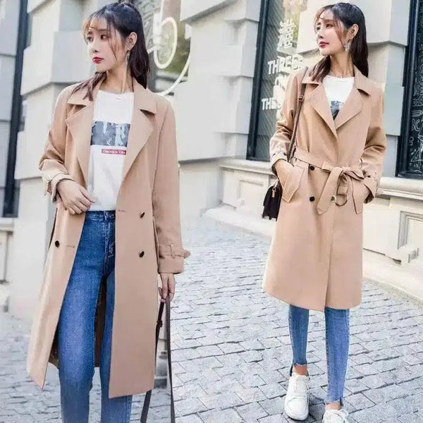 Bältad trenchcoat med uppslagen krage för kvinnor
