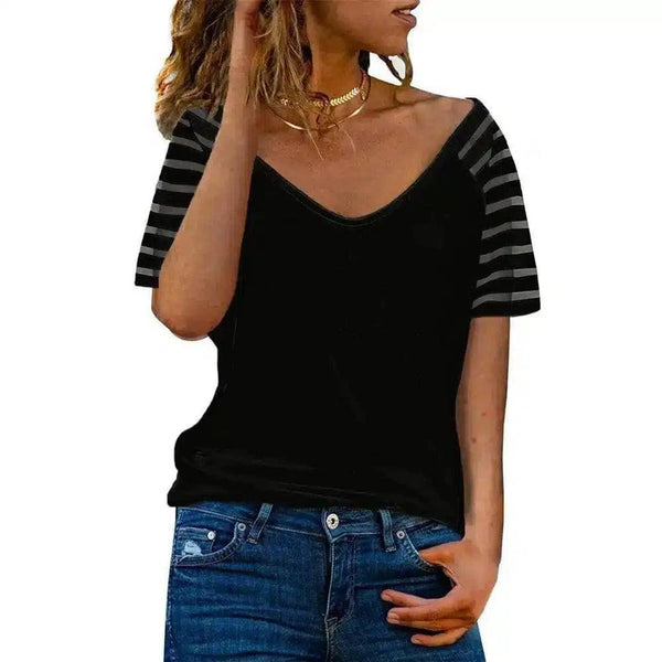 T-shirt med randig ärm och V-ringad hals för kvinnor