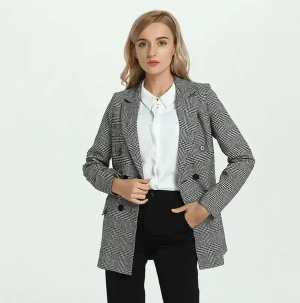 Plaid Blazer Jacket Casual för kvinnor