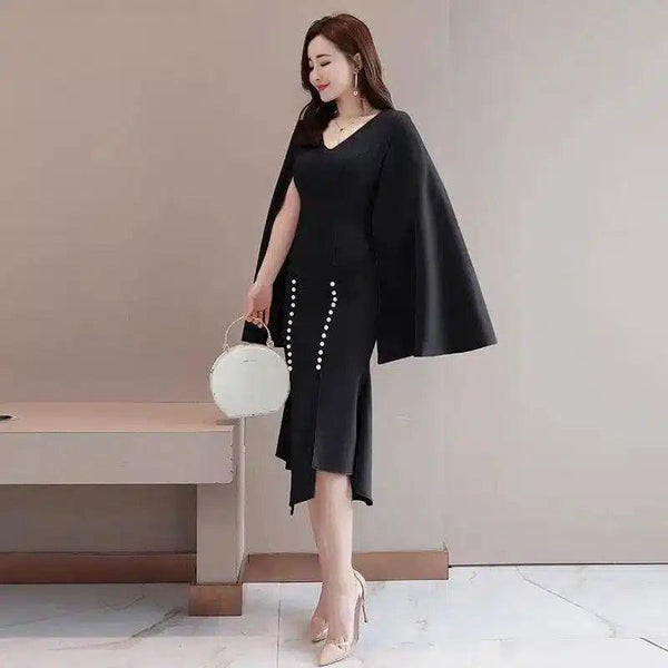 Elegant Cape-klänning för kvinnor med pärldekorationer