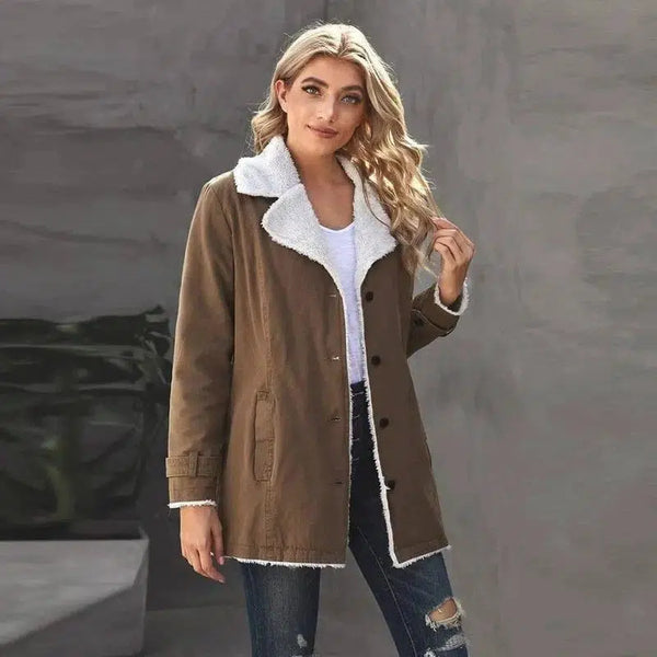 Sammet kappa kvinnor Cross-border Mid-lång Lapel bomull
