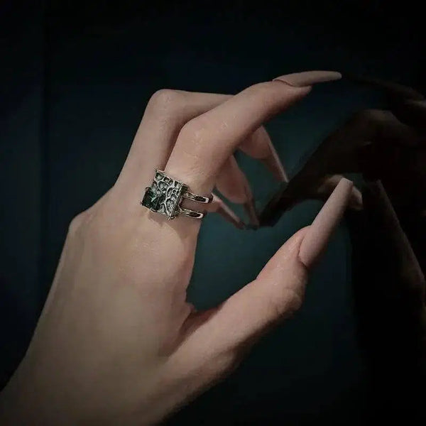 Vintage Silver Fyrkant Mörkgrön Diamant S925 Sterling