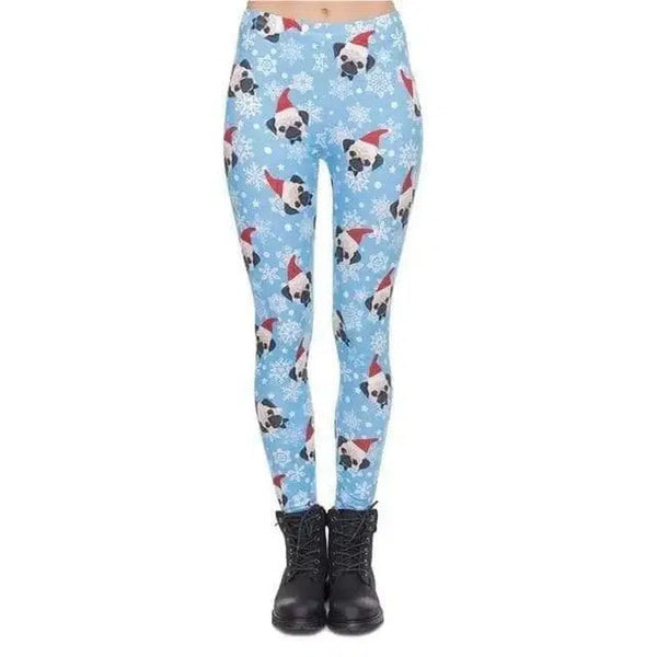Zohra Legging med hög elasticitet för kvinnor Santa Pug tryck Blå