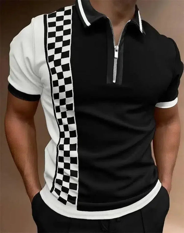 Fashion Loose Lapel Casual Print T-Shirt Zipper POLO Shirt