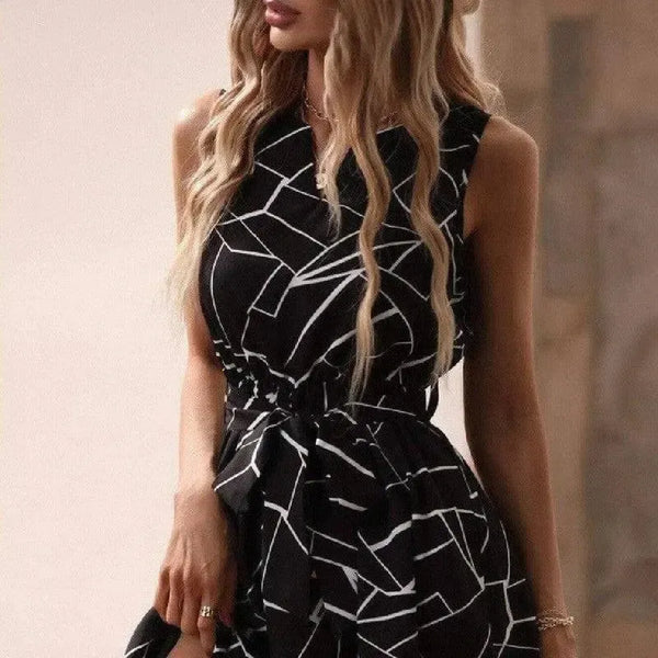 - Stil: Ärmlös damklänning med trendigt tryckt design