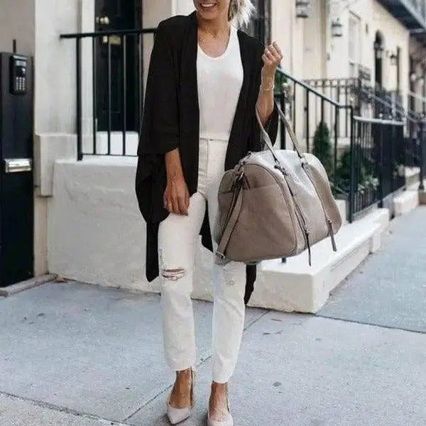Ms Lång lös oregelbunden fåll kappa av stickning cardigan