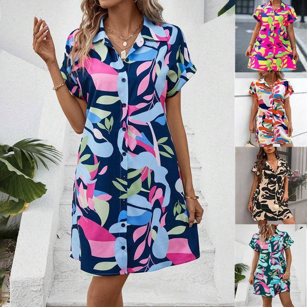 Nytt Blommigt tryck Kortärmad Skjortklänning Sommarmode