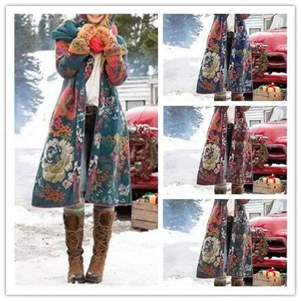 Produktbeskrivning: Kvinnlig Court Style Tryckt Mid-längd Hooded Tjock