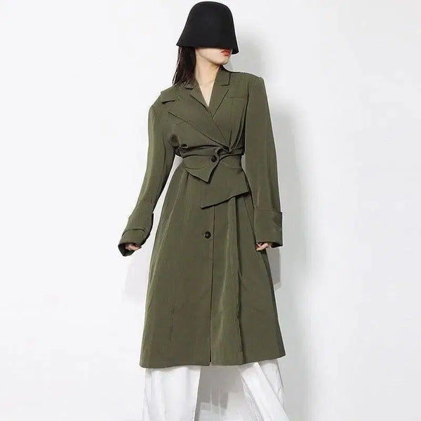 Lång kappa med oregelbunden panel och enkelknäppt uppslag