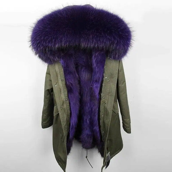 Produktbeskrivning: Oversized Parka Coat med tvättbjörnspälskrage