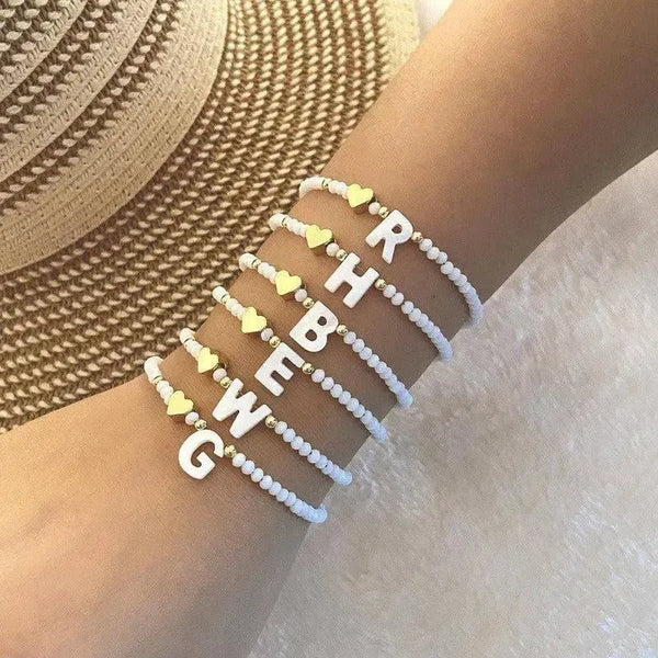26 bokstäver vitt skal pärlarmband kvinnor metall kärlek design armband smycken