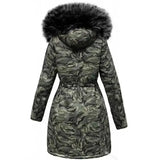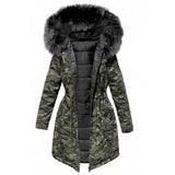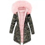 Plysch tjock kappa lös stor pälskrage halvlång kamouflage