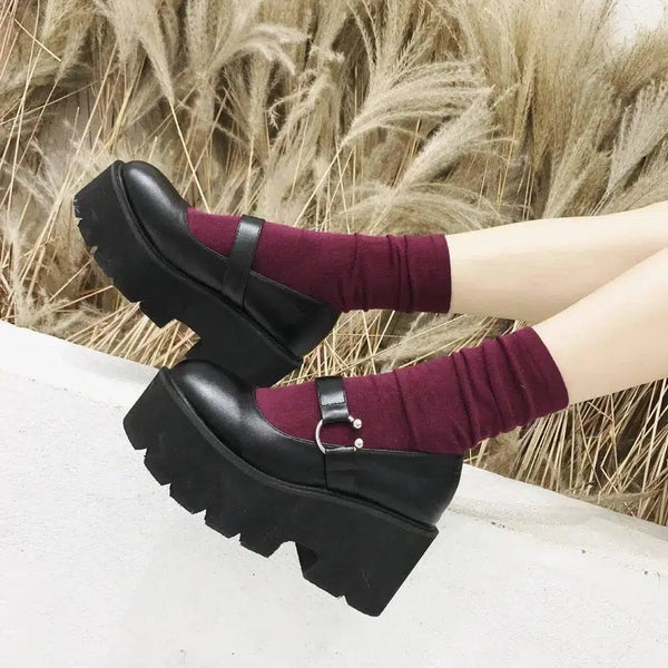 - Design: Retroinspirerade plattformsskor med ett distinkt runt spänne.