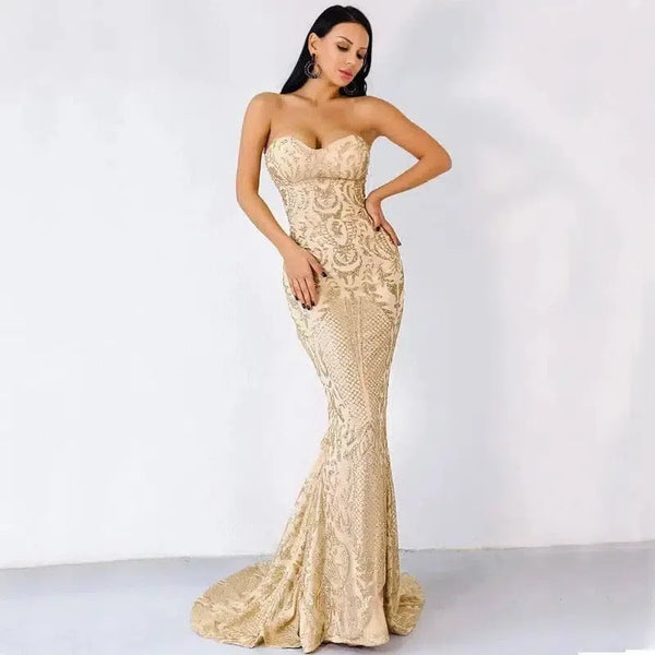 ELEGANT AXELBANDSLÖS GEOMETRISK AFTONKLÄNNING