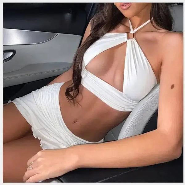 Crop Top Minikjolar Tvådelade set Kvinnor Halter Top