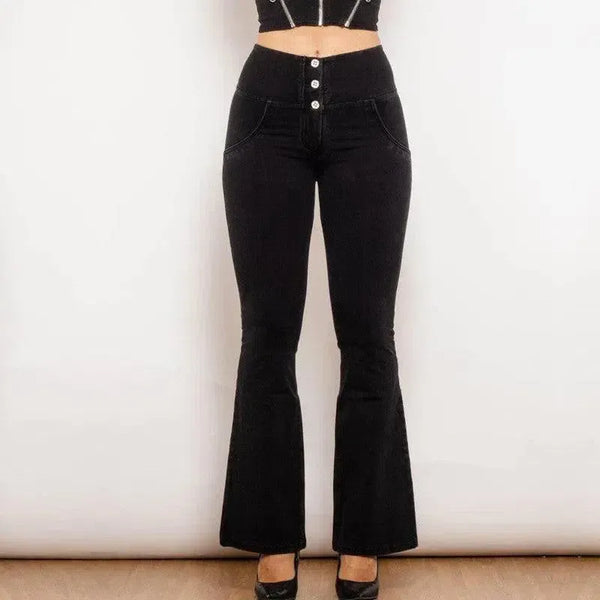 Shascullfites Melody Svart Utsvängda Lift Jeggings Knapp Upp