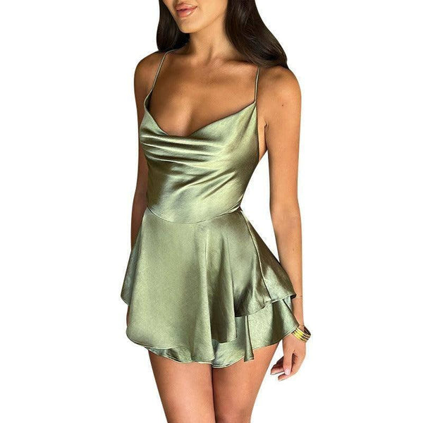 Smal A-linjeformad klänning med axelband i satin utan baksida för